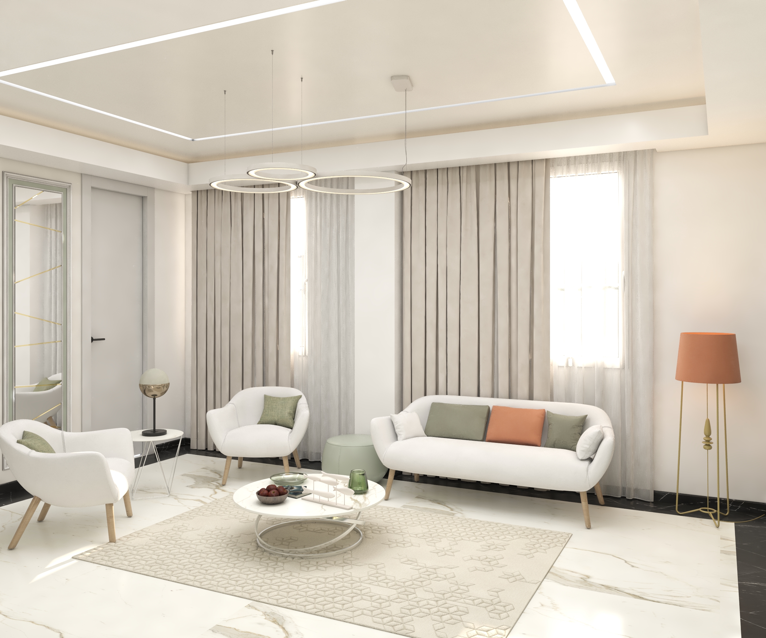 استفاده از متریال با کیفیت مانند سنگ مرمر روشن در کف
